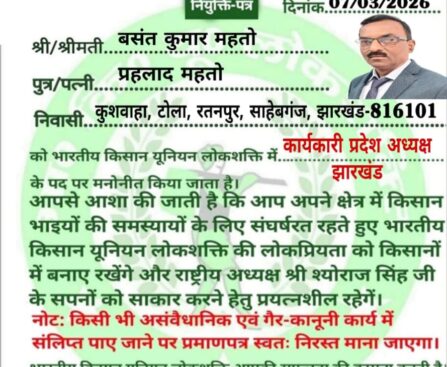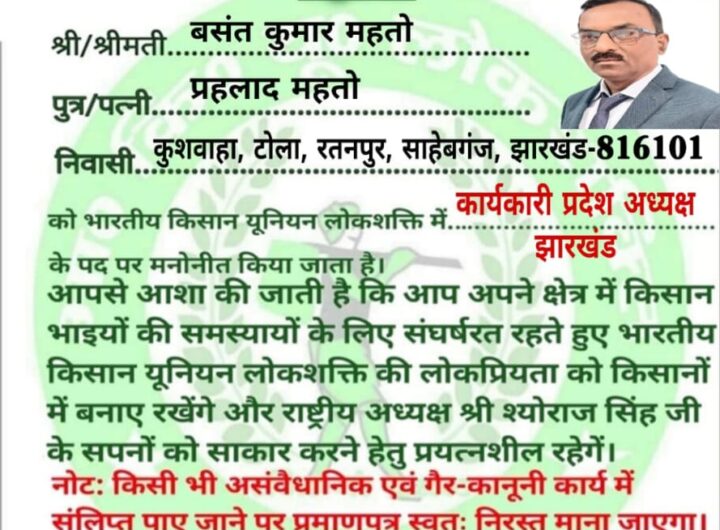 मानवाधिकार कार्यकर्त्ता बने भारतीय मजदूर यूनियन लोकशक्ति के झारखण्ड प्रदेश अध्यक्ष !