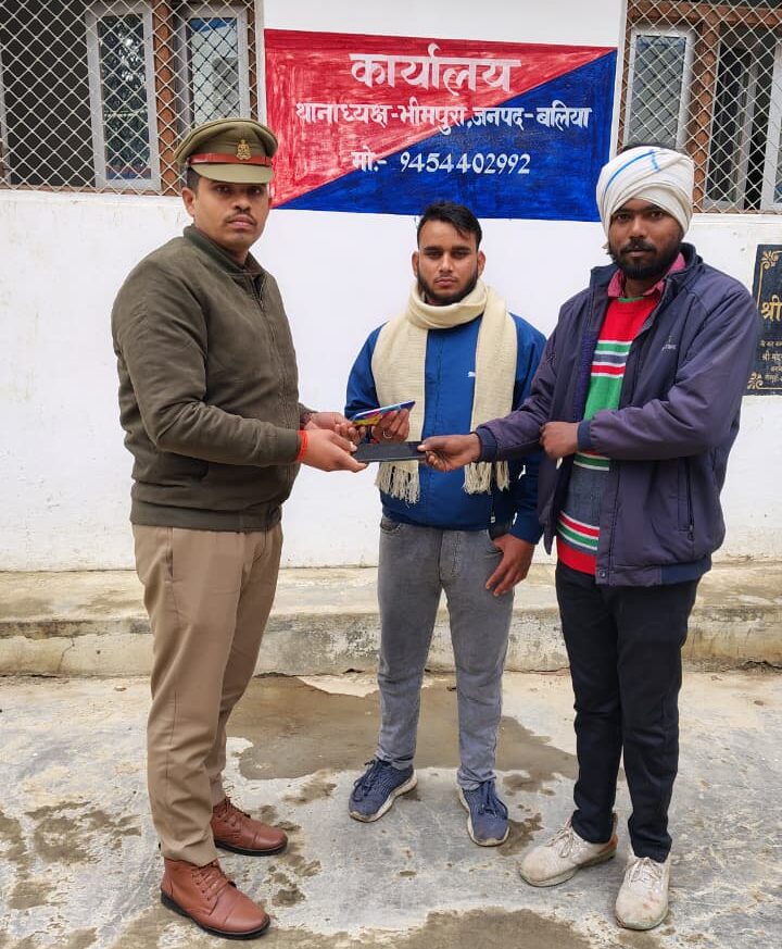 3 जनवरी 2026 : श्रीमान् पुलिस अधीक्षक महोदय बलिया श्री ओमवीर सिंह द्वारा थाना स्थानीय पर CEIR पोर्टल के माध्यम से दर्ज मोबाईल गुमशुदगी की बरामदगी हेतु चलाये जा रहे अभियान में श्रीमान अपर पुलिस अधीक्षक बलिया उत्तरी महोदय श्री दिनेश कुमार शुक्ला के पर्यवेक्षण व श्रीमान् क्षेत्राधिकारी रसड़ा श्री आलोक कुमार गुप्ता के कुशल नेतृत्व में थाना भीमपुरा पुलिस टीम को मिली सफलता| उल्लेखनीय है कि आवेदकगण का मोबाइल बाजार जाते समय कहीं गुम हो जाने के सम्बन्ध में आवेदकों द्वारा अपने मोबाइल की आनलाइन गुमशुदगी दर्ज करवा कर थाना भीमपुरा पर लिखित प्रार्थना पत्र देकर CEIR पोर्टल पर रजिस्टर एवं सर्विलांस सेल बलिया व थाना साइबर हेल्प डेस्क की सहायता से खोज किया जा रहा था| जिसके क्रम में आज दिनांक 03.01.2026 को थाना भीमपुरा पुलिस टीम द्वारा CEIR पोर्टल पर रन कराये गये गुमशुदा मोबाईल को बरामद कर मोबाईल स्वामी को नियमानुसार पुलिस टीम द्वारा सुपुर्द किया गया| अपना गुम हुआ मोबाइल पाकर मोबाइल स्वामीगण द्वारा भीमपुरा पुलिस टीम की भूरि भूरि प्रशंसा करते हुए धन्यवाद दिया गया|