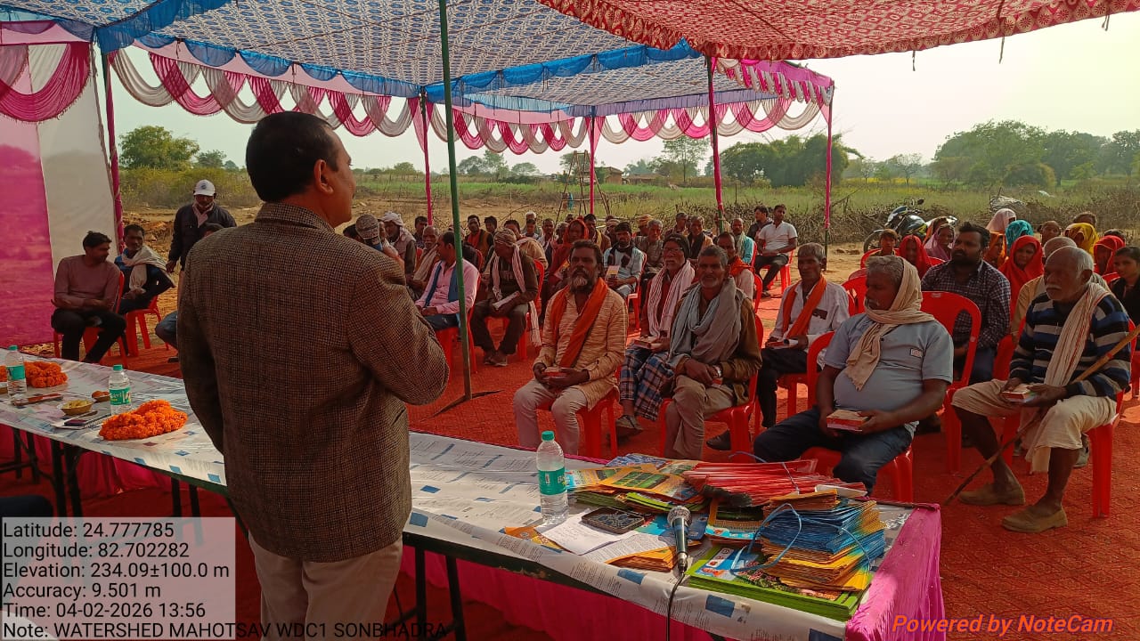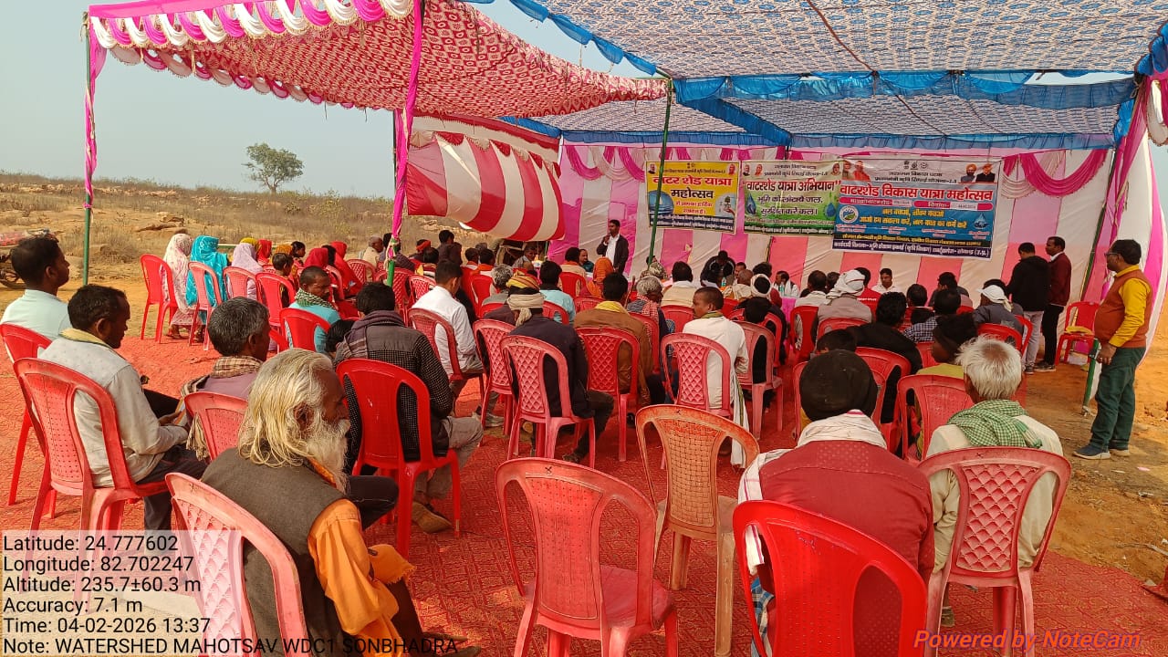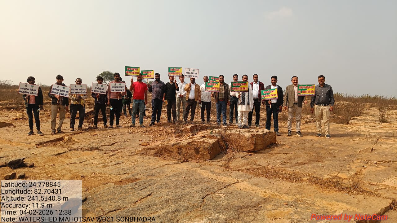 5 फरवरी 2026 : जलागम विकास घटक- प्रधानमंत्री कृषि सिंचाई योजना- 2.0 के अंतर्गत परियोजना डब्ल्यूडीसी-1 सोनभद्र के विकास खंड घोरावल के जलागम समिति पत्थरताल में वाटरशेड महोत्सव का आयोजन किया गया| जिसमें जलागम समिति के अध्यक्ष ग्राम प्रधान श्री सियाराम पाल एवं जलागम समिति पुरना के ग्राम प्रधान श्री रमेश यादव जी परियोजना प्रबंधक/भूमि संरक्षण अधिकारी श्री अमित कुमार चौबे कृषि विज्ञान केन्द्र के वैज्ञानिक डॉ विश्वनाथ यादव एवं समस्त कर्मचारीगण, स्वयं सहायता समूह, वाटरशेड समिति से आए सदस्य गण आदि उपस्थित रहे| कार्यक्रम के अंतर्गत भूमि संरक्षण अधिकारी द्वारा उत्कृष्ट अग्रणी कृषकों, स्वयं सहायता समूह कि महिलाओं को पुरस्कृत/ सम्मानित किया गया एवं कार्यक्रम में जल शपथ ग्रहण,वृक्षारोपण, श्रमदान, भूमि पूजन, लोकार्पण आदि के कार्य कराए गए|
