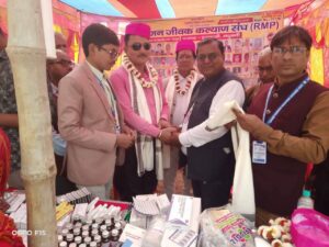 17 फरवरी 2026 : जिसका विधिवत उद्घाटन सीओ रीना कुमारी ने की इस अवसर पर सीओ, जीप सदस्या रीना कुमारी, डॉ, सुनील कुमार, भाजपा नेता अनिल कुमार सिंह, गोपाल मंडल सहित अन्य अतिथियों को पाग, दोपटा व फूलमाला से स्वागत किया गया| शिविर में साधु, संतो समेत सैकड़ों जरूरतमंद परिक्रमा यात्रियों को निशुल्क उपचार व दवाइयां दी गयी. इस अवसर पर संघ के राष्ट्रीय अध्यक्ष डॉ रवींद्र ठाकुर व प्रदेश युवाध्यक्ष गुड्डू कुमार सिंह ने कहा कि विगत 20 वर्षों से परिक्रमा यात्रियों के लिए हर वर्ष भारतीय क्षेत्र के चारो पड़ाव पर निशुल्क चिकित्सा शिविर लगाया जाता है. इस वर्ष भी भारतीय क्षेत्र के चारों पड़ाव पर परिक्रमा यात्रियों के लिए निःशुल्क चिकित्सा शिविर लगाया जाएगा. कहा कि संघ का मुख्य उद्देश्य मानव सेवा है. हमारे संघ के ग्रामीण चिकित्सकों के द्वारा सुदूर ग्रामीण क्षेत्रों में लगातार सेवाएं दी जाती है. इस शिविर का लाभ सैकड़ों साधु संत व परिक्रमा में शामिल श्रद्धालुओं ने लिया, मौके पर संघ के प्रदेश पर्यवेक्षक डॉo अमर राम,डॉo प्रदेश सचिव अरशद कमाल,प्रदेश संगठन सचिव डॉo मुनिदेव सिंह, प्रदेश प्रवक्ता डॉo उदयचन्द्र यादव, डॉo श्याम ठाकुर, डॉo लाल प्रसाद, डॉ. विजय ठाकुर,डॉoदुर्गानंद लाल कर्ण, डॉo सतेंद्र कुमार, डॉo अजय कुमार यादव, डॉo शैलेन्द्र कुमार, डॉo आलोक, डॉo नागेंद्र राम, डॉo शंकर सिंह, डॉo जयनारायण यादव, डॉo अमानुल, डॉo अवध नारायण, डॉo आशिफ, डॉo किशोर शरण, डॉo रामवृक्ष, डॉo मनोज कुमार सहित अन्य चिकित्सकों ने शिविर में सेवाएं दी| दुर्गानन्द लाल कर्ण, डॉ, डॉ राम हृदय ठाकुर, डॉ सुरेश प्रसाद, डॉ किशोर शरण दत्त, डॉ नागेन्द्र राम, डॉ रामप्रीत मंडल, डॉ यदुवीर प्रसाद, डॉ आमनुल हक1 सहित जन जीवक के दर्जनों ग्रामीण चिकित्सक मौजूद थे।