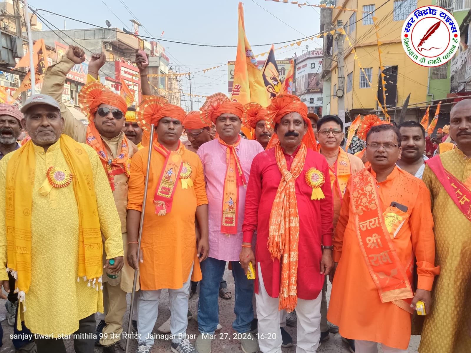 28 मार्च 2026 : मधुबनी जिला जयनगर में रामनवमी को लेकर विशाल शोभा यात्रा निकाला गया इस शोभा यात्रा का उद्घाटन कला एवं संस्कृति विभाग मंत्री अरुण शंकर प्रसाद एवं राजनगर के पूर्व विधायक रामचरित पासवान समाजसेवी के कल्पना सिंह कुशवाहा नगर पंचायत के अध्यक्ष कैलाश पासवान नगर पंचायत के उपाध्यक्ष माला देवी प्रतिनिधि अरविंद तिवारी गिरधर सराफ धीरेंद्र झा रामदास हाजरा मोती यादव पंकज गुप्ता प्रमोद शाह देव नारायण सा एवं शहर के विभिन्न क्षेत्र के ग्रामीण एवं शहरी क्षेत्र के महिला बुजुर्ग बच्चों इस महा शोभायात्रा में अपने-अपने अखाड़े से झांकी निकालकर जयनगर शहर को राम में कर सनातन धर्म का स्थापित करने के लिए एक रंग भगवा कलर बस्तर में नजर आए कार्यक्रम का शांति सुरक्षा बनाने के लिए जयनगर के डीएसपी राघव दयाल थाना प्रभारी जयनगर सब जयनगर एवं अतिरिक्त सुरक्षा बल के द्वारा के साथ शोभायात्रा शहर के भवन कर शहीद चौक पर समापन किया गया|