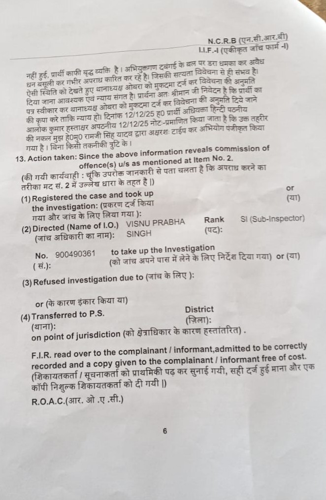 15 अप्रैल 2026 : जनपद के ओबरा नगर स्थित श्रीराम मंदिर प्रांगण से जुड़ा विवाद एक बार फिर चर्चा में आ गया है। प्रशासनिक जांच में मंदिर परिसर की भूमि को राज्य सरकार/नगर पंचायत की संपत्ति बताया गया है, जबकि पूर्व में संचालन कर रही समिति का पंजीकरण भी निरस्त किया जा चुका है। दिनांक 7 जुलाई 2025 को प्रशासन द्वारा आयोजित बैठक में यह निर्णय लिया गया था कि नई वैध समिति के गठन तक मंदिर परिसर की समस्त व्यवस्थाओं की देखरेख प्रशासनिक अधिकारियों द्वारा की जाएगी। इसके बावजूद वर्तमान में निरस्त की जा चुकी समिति से जुड़े व्यक्तियों द्वारा धार्मिक आयोजनों की घोषणा तथा परिसर में स्थित रामलीला मैदान एवं मानस भवन की बुकिंग किए जाने के आरोप सामने आए हैं। इस संबंध में थाना ओबरा में दर्ज FIR संख्या 0074 (दिनांक 14 अप्रैल 2026) में आरोप लगाया गया है कि मंदिर परिसर में कार्यक्रम आयोजित करने के लिए ₹25,000 की मांग की गई तथा पैसे न देने पर गाली-गलौज एवं जान से मारने की धमकी दी गई सूत्रों के अनुसार, यह भी आरोप है कि कुछ व्यक्तियों द्वारा परिसर पर नियंत्रण रखते हुए धन वसूली की जा रही है, जिससे स्थानीय लोगों में असंतोष की स्थिति बनी हुई है। अब स्थानीय नागरिकों द्वारा यह मांग उठाई जा रही है कि आगामी धार्मिक आयोजनों को प्रशासनिक देखरेख में कराया जाए तथा मंदिर से संबंधित सभी व्यवस्थाओं में पारदर्शिता सुनिश्चित की जाए।