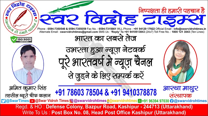 *News Portal* : https://swarvidrohtimes.in/ & https://swarvidrohtimes.com/ & https://swarvidrohtimes.in/*YouTube Channel* : https://youtube.com/channel/UC7gEfUA_lFFjHR6jmpvHQGA*Koo* : https://www.kooapp.com/profile/swarvidrohtimes*Facebook Profile* : https://www.facebook.com/profile.php?id=100076756535892*Facebook Page* : https://www.facebook.com/swarvidrohtimes/*Kutumb App* : https://kutumb.app/swar-vidroh-times*Twitter* : https://twitter.com/SwarTimes*Instagram* : https://www.instagram.com/swarvidroh/