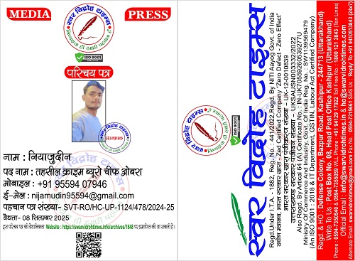 तहसील क्राइम ब्यूरो चीफ ओबरा   मोबाइल : +91 95594 07946   ई – मेल : nijamudin95594@gmail.com