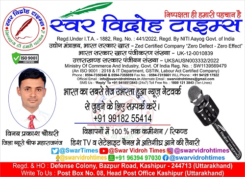 *News Portal* : https://swarvidrohtimes.in/ & https://swarvidrohtimes.com/ & https://swarvidrohtimes.in/*YouTube Channel* : https://youtube.com/channel/UC7gEfUA_lFFjHR6jmpvHQGA*Koo* : https://www.kooapp.com/profile/swarvidrohtimes*Facebook Profile* : https://www.facebook.com/profile.php?id=100076756535892*Facebook Page* : https://www.facebook.com/swarvidrohtimes/*Kutumb App* : https://kutumb.app/swar-vidroh-times*Twitter* : https://twitter.com/SwarTimes*Instagram* : https://www.instagram.com/swarvidroh/