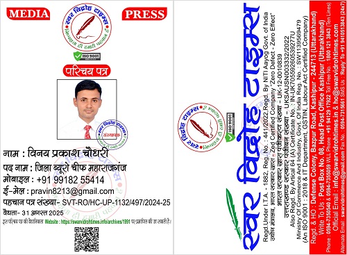 ☎️ Phone : 0594-7350540 & 0594-7355059 📞 WLL Phone : +91 94129 17922 💼 Official Whatsapp : +91 96394 97030 📧 Official Email : info@swarvidrohtimes.in 📩 Alternate Email : swarvidrohtimes@gmail.com