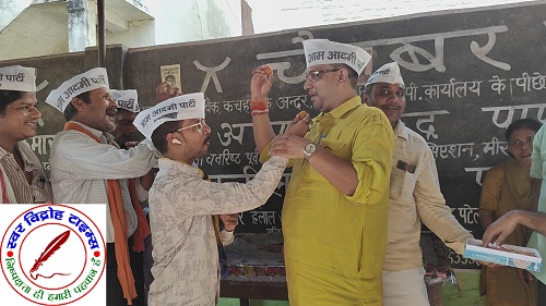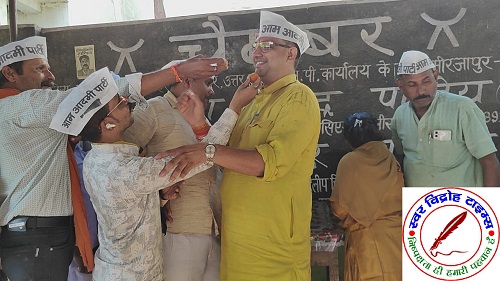 मिर्जापुर जनपद में आज आम आदमी पार्टी के पदाधिकारियो ने लड्डू बांट कर उन्हें दी बधाई !