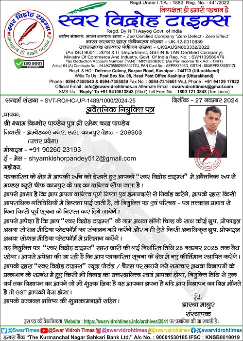 *News Portal* : https://swarvidrohtimes.in/ & https://swarvidrohtimes.com/ & https://swarvidrohtimes.in/