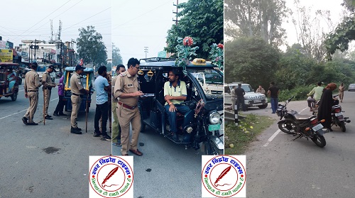 04 अक्टूबर 2024 : श्री प्रहलाद नारायण मीणा SSP नैनीताल द्वारा सड़क दुर्घटनाओं पर अंकुश लगाने हेतु यातायात नियमों का उल्लंघन करने वालों के विरुद्ध चैकिंग अभियान चलाकर कार्यवाही तथा रात्रि गश्त के निर्देश दिये हैं । इसी क्रम में दिनांक श्री हरबंस सिंह SP क्राइम / यातायात नैनीताल के पर्यवेक्षण में सभी सम्बन्धितों द्वारा यातायात नियमों का उल्लंघन करने वालों के विरुद्ध चैकिंग अभियान चलाया गया । दिनांक – 03.10.2024 की सघन चैकिंग अभियान में जनपद में यातायात नियमों का उल्लंघन करने वाले 180 वाहन चालकों के विरुद्ध कार्यवाही करते हुए 06 वाहन सीज व 20 DL निरस्तीकरण की कार्यवाही कर 82,500 रुपये का राजस्व जमा किया गया ।नैनीताल रोड में चैकिग के दौरान प्रभारी निरीक्षक हरपाल सिंह द्वारा एक बाईक चालक जो कि नैनीताल में डांट से माल रोड होते हुए घोड़ा स्टैंड में चालक द्वारा हेलमेट हाथ में टॉगकर, बाइक की पीछे की नंबर प्लेट गायब, बाइक पर लाल-नीली बत्तियां जगमगाते हुए सड़क पर बाईक दौड़ाने पर जो कि नियमों का स्पष्ट उल्लंघन है । पुलिस द्वारा उसे रोककर नियमों से अवगत कराते हुए मोटर वाहन अधिनियम के अंतर्गत बाइक सीज कर आवश्यक कार्यवाही की गई है ।नैनीताल पुलिस ने सभी नागरिकों से अपील की है कि वे सड़क पर सुरक्षा नियमों का पालन करें और हेलमेट पहनें । बिना नंबर प्लेट और अन्य नियमों का उल्लंघन करने वाले चालकों के विरुद्ध कार्यवाही जारी रहेगी ।नगर ब्यूरो चीफ हल्द्धानी रविन्द्र गुप्ता (रवि) की रिपोर्ट