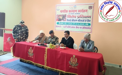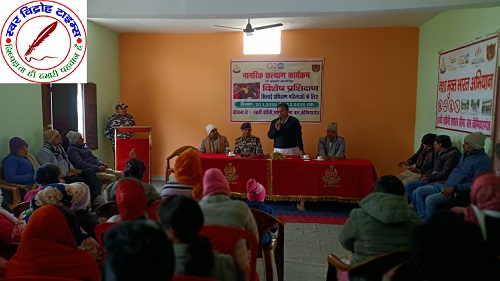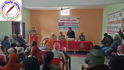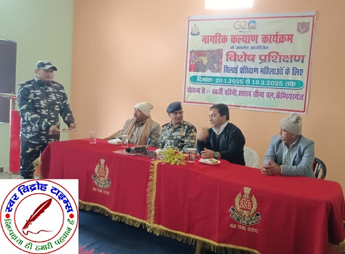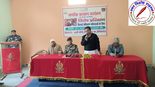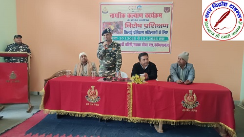 20 जनवरी 2025 : ग्राम बभनी बुजुर्ग के पंचयात भवन पर 66 वीं वाहिनी सशस्त्र सीमा बल, कैम्पियरगंज के सौजन्य से नागरिक कल्याण कार्यक्रम के अंतर्गत आयोजित विशेष प्रशिक्षण कार्यक्रम मे मुख्य अतिथि के रूप में लोकप्रिय विधायक फरेन्दा माननीय श्री वीरेन्द्र चौधरी जी ने शामिल होकर उपस्थित जनसमूहों को सम्बोधित किया । इस अवसर पर एसएसबी कमांडेंट श्री जगदीश जी की गरिमामयी उपस्थिति रही और बभनी ग्राम प्रधान श्री संतोष उर्फ़ बबलू यादव जी, श्री दुर्गा शंकर पाण्डेय जी, श्री माधव चौधरी जी के साथ अन्य सम्मानित लोग कार्यक्रम मे सम्मिलित हुए ।जिला ब्यूरो चीफ महाराजगंज विनय प्रकाश चौधरी की रिपोर्ट