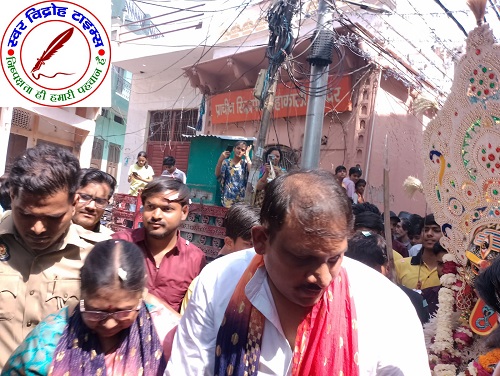 04 अप्रैल 2025 : आज दिनांक 4 अप्रैल 2025 को घंटर चौक स्थित प्राचीन काली मंदिर से मां काली की शोभायात्रा का आयोजन किया गया । जिसका उद्घाटन शहर विधायक श्रीमती मुक्ता राजा द्वारा किया गया । इस अवसर पर खैर नगर के अध्यक्ष संजय शर्मा उर्फ संजय भैया भी उपस्थित थे । सर्वप्रथम शहर विधायक मुक्त राजा जी ने मां काली को हरी झंडी दिखाकर शोभायात्रा का शुभारंभ किया । खैर अध्यक्ष संजय शर्मा जी द्वारा माता काली को माला पहनाई गई । इस अवसर पर क्षेत्र में प्रतिष्ठित भाजपा के सेक्टर प्रमुख बापू सभासद डॉक्टर दिनेश कुमार शर्मा की उपस्थित थे । सम्पूर्ण कार्यक्रम की व्यवस्था और संचालन डॉक्टर दिनेश कुमार शर्मा जी द्वारा किया गया । पूरे क्षेत्र में माता काली का भ्रमण किया गया तत्पश्चात प्रसादी का वितरण किया गया ।