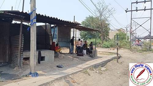 भीषण गर्मी मे पेड़ और दुकान का शेड ही सहारा बस यात्रीयो का !