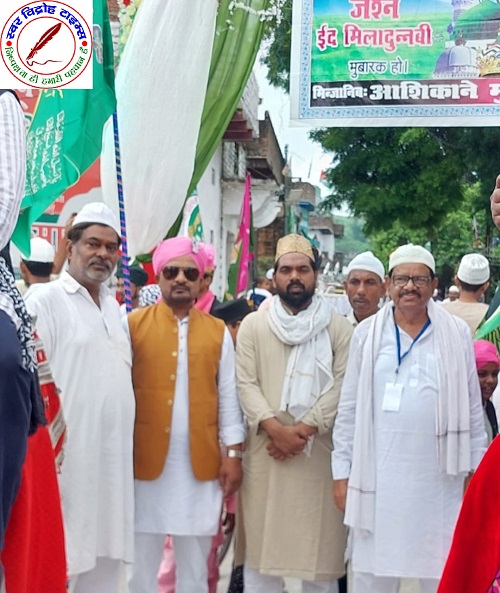 05 सितम्बर 2025 : बारावफात के अवसर पर नगर सहित ग्रामीण क्षेत्रों में शुक्रवार को धूमधाम से ईद ए मिलादुन्नबी का जुलूस निकाला गया । नगर में पालिका चेयरमैन मंसूर अहमद के नेतृत्व ईद ए मिलादुन्नबी का भव्य जुलूस दरगाह शरीफ से होते हुए बहरामगंज, टेकौर आदि मुहल्ले से होते हुए दरगाह शरीफ में पुनः पहुंच कर संपन्न हुआ । जुलूस में बाबू भाई, नयूम भाई, अल्पसंख्यक अध्यक्ष अख्तर अली, समसाद भाई, कुतबूदीन भाई, रहीम भाई, गुडू खान, हाफीज सुलेमान, मुन्नू हाजी, मुख्तार खान, एकराम खालीद भाई, पिंटू सहित सैकड़ो की संख्या मे लोग शामिल हुए ।स्टेट को-ऑर्डिनेटर उत्तर प्रदेश गोपीनाथ मिश्रा की रिपोर्ट