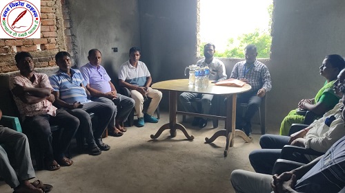 15 सितम्बर 2025 : दिनाँक 14 सितम्बर 2025 को “राष्ट्रीय सूचनाधिकार, मानवाधिकार एवं पर्यावरण संरक्षण संगठन” के प्रदेश महासचिव बसंत कुमार महतो के द्वारा पूर्व सूचना के आलोक में पाकुड़ जिला के प्रखण्ड लिट्टीपाड़ा में प्रदेश उपाध्यक्ष श्री गणेश चन्द्र साहा की अध्यक्षता में संगठन के प्रचार – प्रसार एवं जागरूकता हेतु एक बैठक हुई, जिसमें अतिथि के रूप में प्रदेश महासचिव बसंत कुमार महतो, प्रदेश सचिव रविकांत भगत एवं शिव कुमार मण्डल, प्रदेश प्रभारी ने साहेबगंज से आकर संगठन का प्रतिनिधित्व किये, बैठक में सभी ने अतिथि का गर्म जोशी से स्वागत किया, तत्पश्चात बारी बारी से एक दूसरे ने अपनी परिचय दिए, प्रदेश महासचिव एवं प्रदेश सचिव ने उपस्थित प्रबुद्ध नागरिकों एवं समाजसेवीयों के बीच संगठन के बारे में विस्तार से चर्चा किये, संगठन के दिशा निर्देश एवं समाज के प्रति संगठन के दायित्व को समझाया, तत्पश्चात कई सज्जनों द्वारा पूछे गये सवालों की बारीकी से उदाहरण के साथ उपस्थित अमजनों को संतुष्ट किया गया, संगठन से जुड़े सक्रिय कार्यकर्ताओं को संगठन के तरफ से समय समय पर कार्य अनुसार पुरस्कृत भी किया जाता है एवं संगठन के हर सदस्य संगठन परिवार जैसा होता है, संगठन के बारे में विस्तार से जानने के पश्चात कई लोगों ने संगठन से जुड़कर समाजहित कार्य करने की मंशा जाहिर की एवं तीन लोगों ने तत्काल ही संगठन के जिला स्तर पर जुड़ने हेतु प्रक्रिया में भाग लिया जिसमें श्री महानन्द गराई, सारीफ अंसारी एवं प्रेमलाल साहा जी हैं, आज की बैठक संगठन हित एवं मानव हित में काफ़ी सकारात्मक रहा जिसे धन्यवाद ज्ञापन कर समाप्त की गई, इस बैठक से इलाके में संगठन का स्तर बढेगा और इससे समाज लाभान्वित होंगे l