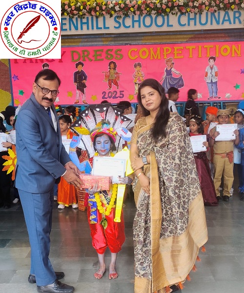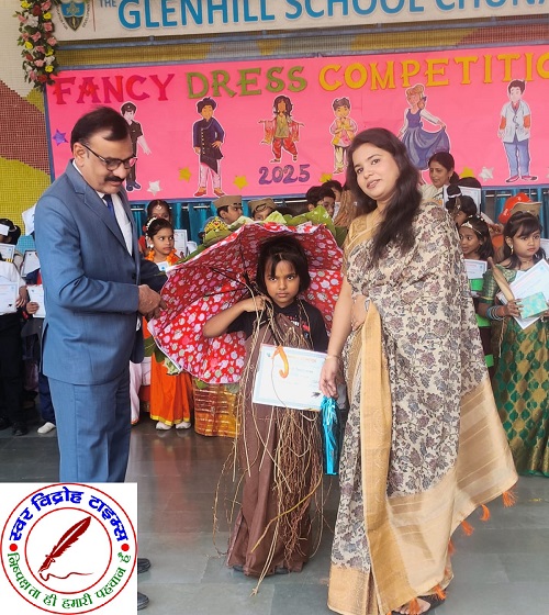 16 नवम्बर 2025 : चुनार नगर के रामबाग स्थित द ग्लेनहिल स्कूल में बाल दिवस समारोह का आयोजन किया गया । विद्यालय के प्रधानाचार्य माननीय दिलीप कुमार मिश्रा द्वारा देश के प्रथम प्रधानमंत्री पंडित जवाहरलाल नेहरू के तस्वीर पर माल्यार्पण एवं दीप प्रज्वलन कर किया गया । बच्चों द्वारा केक काटकर नेहरू का जन्मदिन मनाया गया। छात्र-छात्राओं ने हिंदी और अंग्रेजी दोनों ही भाषाओं में अपने विचार प्रस्तुत किए एवं काव्य पाठ भी किये । इस दौरान फैंसी ड्रेस प्रतियोगिता का आयोजन किया गया । प्रतियोगिता का संचालन विद्यालयके समन्वयक योगेश गुप्ता एवं प्री प्राइमरी समन्वयक रश्मि शर्मा के निर्देशन में किया गया । प्रतियोगिता में नर्सरी से कक्षा 9 तक के विद्याथी शामिल हुए, जिसमें निर्णायक मंडल विद्यालय के अध्यापक अध्यापिका एवं अभिभावक भी रहे । परिणाम निर्धारक मध्यस्थ निर्धारक नीरज मिश्रा, कमलेश एवं आनंद अग्रवाल रहे । कार्यक्रम में नन्हें मुन्ने बच्चों ने प्रधानाचार्य दिलीप कुमार मिश्रा और निर्देशिका सायरा मैम को बुके देकर स्वागत किया । छात्र-छात्राओं ने स्वागत गीत एवं नृत्य के द्वारा मुख्य अतिथि एवं समस्त अभिभावकों का स्वागत किया । विद्यालय के प्रधानाचार्य माननीय दिलीप कुमार मिश्रा ने अपने ओजस्वी शब्दों द्वारा छात्र-छात्राओं का उत्साह वर्धन किया । काल्पनिक परिधान में ऐतिहासिक, राजनैतिक, सामाजिक, देवी देवताओं के रूप में बच्चों ने अपने अभिनय को प्रस्तुत किया । जिसमें दुर्गा, लक्ष्मी, पार्वती, कृष्ण, राम के दिव्य रूपों के साथ-साथ रानी पद्मिनी, लक्ष्मीबाई, ज्योतिबाई फुले, श्रवण कुमार जैसे आदर्श चरित्र एवं समाज के विभिन्न समस्याओं की धरती, जल आदि के रूप में भी प्रस्तुति दिए । बच्चों ने अपनी सुनहरे सपनों को डॉक्टर, नर्स, अध्यापक, किसान आर्मी मैन, पुलिस, पायलट नेता आदि के रूप मेंअभिव्यक्त किया । अपने-अपने रोल मॉडल जैसे महात्मा गांधी, नेहरू, चंद्रशेखर आजाद, भगत सिंह, भीमराव अंबेडकर, योगी आदित्यनाथ आदि की भूमिकाओं को भी बखूबी निभाया ।