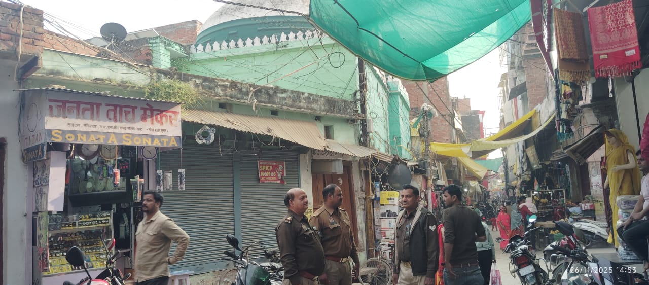 26 नवंबर 2025 : स्थानीय कोतवाली क्षेत्र के मोची टोला में स्थित जामा मस्जिद में सोमवार रात में अराजक तत्वों द्वारा आग लगाए जाने के बाद ऐतिहात के तौर पर मस्जिद एवं मंदिरों पर तैनात रहे पुलिस पीएसी के जवान। इस दौरान जामा मस्जिद, कोतवाली मस्जिद, दरगाह कदम रसूल मस्जिद, रमजानी मस्जिद , राघव जी मंदिर सहित अन्य मंदिरों पर सुरक्षा व्यवस्था में उप निरीक्षक, कांस्टेबल, पीएसी बल तैनात किए गए हैं।