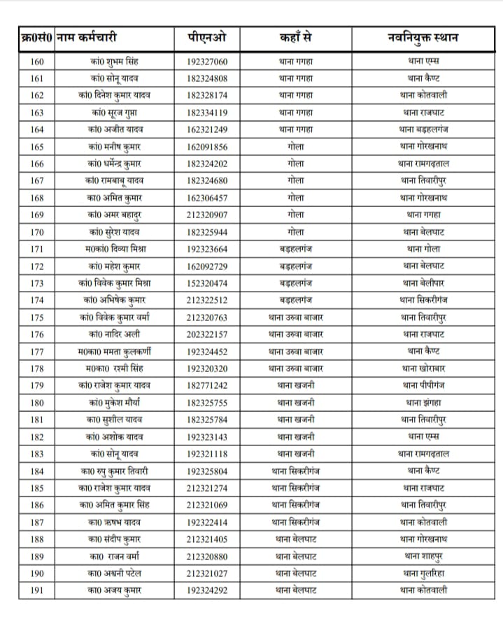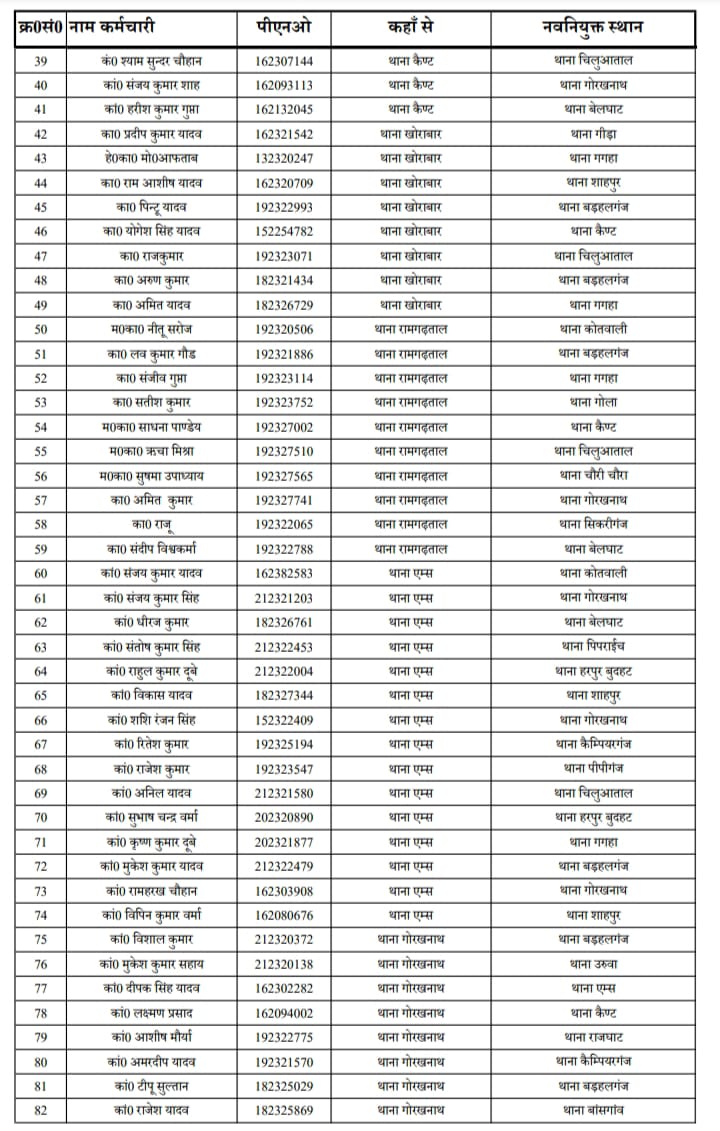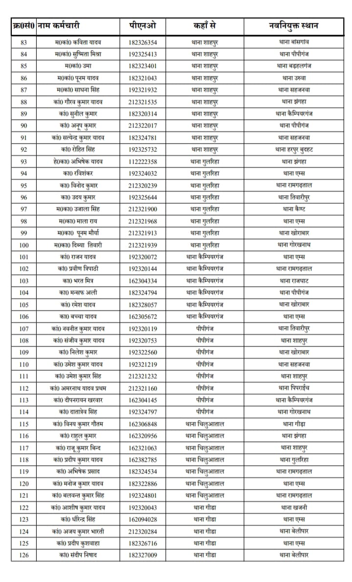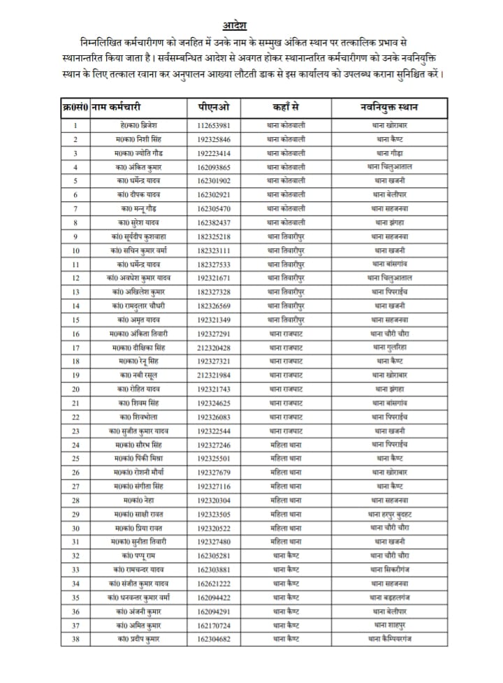 जनपद में हेड कांस्टेबल कॉन्स्टेबल और महिला कांस्टेबल का हुआ बम्पर तबादला, काफी दिनों से एक ही थाने पर जमे पुलिसकर्मियों को हटाया गया देखे सूची किसको कहा मिली तैनाती |