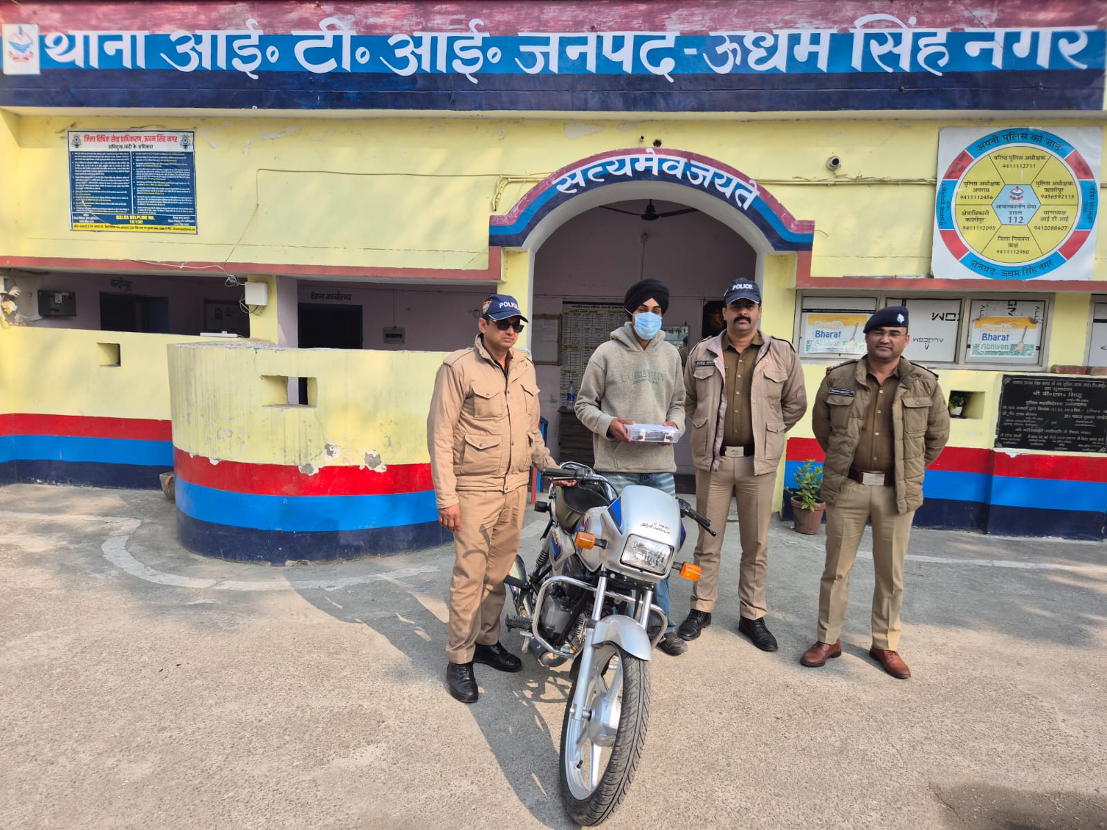 10 दिसम्बर 2025 : श्रीमान वरिष्ठ पुलिस अधीक्षक जनपद ऊधम सिह नगर महोदय द्वारा अवैध शस्त्रो के विरुद्ध चलाये जा रहे अभियान के अन्तर्गत श्रीमान पुलिस अधीक्षक काशीपुर महोदय व श्रीमान क्षेत्राधिकारी महोदय काशीपुर के निर्देशन में प्रभारी थानाध्यक्ष थाना आईटीआई के नेतृत्व मे थाना आईटीआई पुलिस द्वारा दिनांक-09.12.2025 की रात्री में चैकिंग के दौरान श्यामपुरम रोड मोटेश्वर मंदिर के पास से अभियुक्त दिलराज सिह पुत्र अमरीक सिंह निवासी- बेरखेडा थाना बिलासपुर जनपद रामपुर उत्तर प्रदेश को एक अदद तमंचा 315 बोर व एक अदद मोटर साईकिल के सांथ गिरफ्तार कर अभियुक्तगण के विरुद्ध थाना हाजा पर अभियोग पंजीकृत किया गया। अभियुक्त से बरामद अवैध तमंचे के स्रोत के बारे में जानकारी प्राप्त की जा रही है। अभियुक्त को समय से माननीय न्यायालय पेश किया जा रहा है।