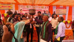 12 दिसंबर 2025 : सूचना तंत्र के सुदृढ़ीकरण एवं जागरूकता कार्यक्रम एवं सबमिशन ऑन एग्रीकल्चर एक्सटेंशन एंड टेक्नोलॉजी योजनांतर्गत विकास खंड स्तरीय रबी गोष्ठी का आयोजन ग्राम गोविंदपुर के खेल मैदान में किया गया।कार्यक्रम की अध्यक्षता श्री कंचन सिंह फौजी एवं श्री धर्मदेव उपाध्याय जिलाध्यक्ष भाकियू/ भाकियू लोकशक्ति मिर्जापुर द्वारा दीप प्रज्वलन कर कार्यक्रम का शुभारंभ किया।